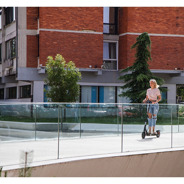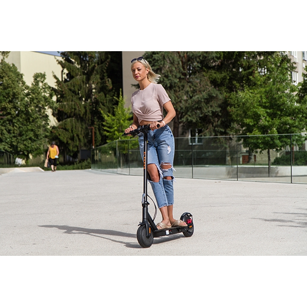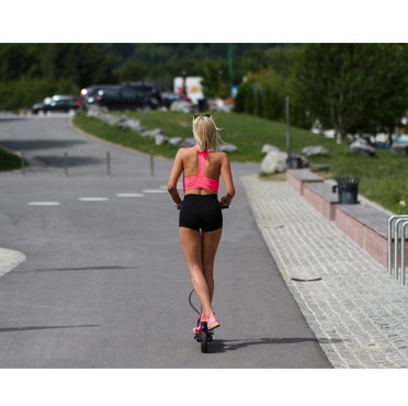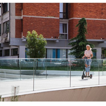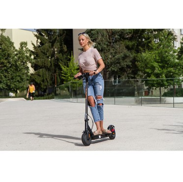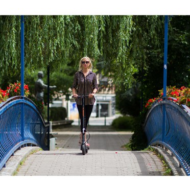 The Element S2 is the fruit of Slovenian development and was created with safety and quality in mind. The powerful 350W motor provides good traction even on hilly roads. The scooter is made of high-quality aluminum and has tires with a honeycomb structure (no worries about getting stuck due to a flat tire). The rear tire has a shock absorption system that ensures a comfortable ride.