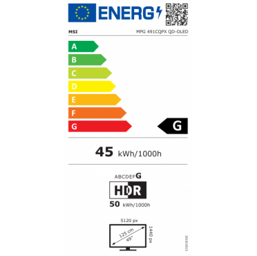 The MSI MPG 491CQPX QD-OLED is a high-performance 49-inch ultra-wide gaming monitor designed for total gaming immersion and maximum productivity. Its curved (1800R) QD-OLED panel with a 32:9 aspect ratio and DQHD (5120 × 1440) resolution creates the feeling of two borderless screens and provides a stunningly wide field of view.