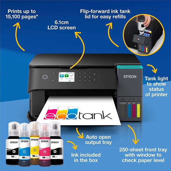 With advanced connectivity, including wireless printing and mobile solutions, the EcoTank L6360 fits seamlessly into modern work environments. An automatic document feeder, duplex printing support and intuitive operation enable efficient work and increased productivity. The Epson EcoTank L6360 represents a long-term and cost-effective solution for businesses that need a reliable multifunction printer.