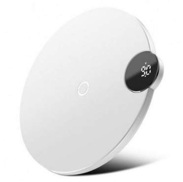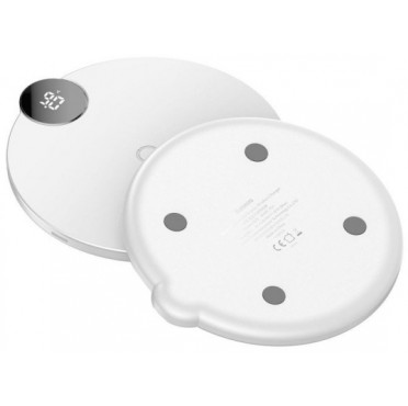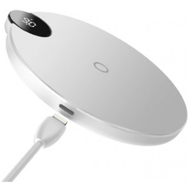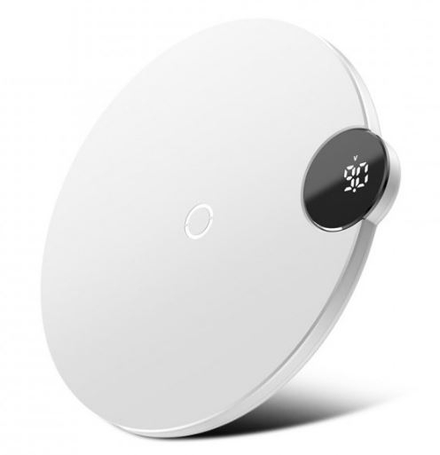 The Baseus charging station enables wireless charging of devices. It supports universal fast charging for Android and iPhone devices that support wireless charging. It has a built-in LCD display that shows the charging status.
